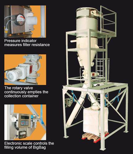 FSB/FSC is a fiber separator that separates fibers from the waste suction system of the Fiber filtration system like the RPF. To make disposal easier, the fiber separator compresses the separated solids and feeds them to a secondary disposal system. The continuous cleaning of the air stream guarantees high solids throughput and at the same time avoids pressure fluctuations in the entire system. This enables continuous operation of the machines and processes to be cleaned.